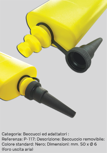 NEW – TECHNICAL DATA SHEET: Item code: P-134 Description: MINI INFLATOR Operation: SINGLE WAY Dimensions: mm.∅31×215 Standard colours: MISCELLANEOUS Adapters: PIN BLACK NOZZLE Reference:/bl X PROFESSIONAL BALLS; FIXED BLUE NOZZLE Reference:/bc X MODELLING BALLOONS, SPAGHETTI; Customisations: COLOURS OF YOUR CHOICE Packaging: STANDARD IN BOX 500 PCS Features: TANK TO CONTEIN ADAPTORS; HIGH INFLATION PRESSURE Technical sectors of use: PROFESSIONAL BALLS (FOOTBALL, BASKETBALL, VOLLEYBALL)